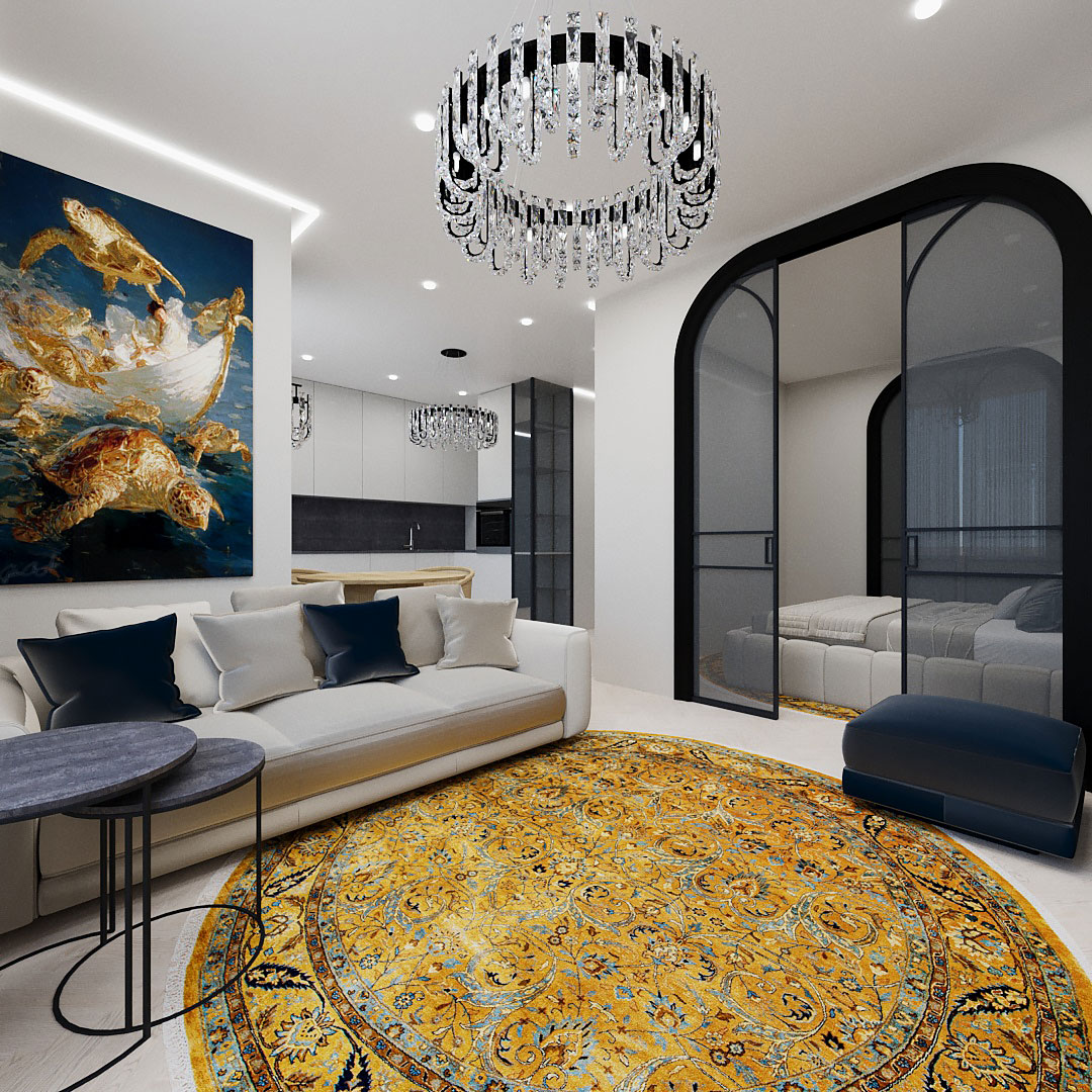 Однокомнатная квартира с функционалом трехкомнатной. Разработка дизайн проекта квартиры Февраль 2022г ПРЕЗЕНТАЦИЯ ОБЪЕКТА Изначальный запрос при разработке дизайн проекта был сделать интерьер максимально функциональным. Разместить много техники. Выделить отдельную комнату для ребенка, мальчик 6 лет. С спальной, игровой и учебной зоной. Основная комната разделена на три части, кухня, столовая и через перегородку гостиную-спальню. Санузел с душевой, с пеналом для размещения техники под потолок. ЦЕНА РЕАЛИЗАЦИИ ДИЗАЙН ПРОЕКТА ПОД КЛЮЧ Строительная отделка с мебелью и материалами, стоимость из расчета 53 000 у.е. (Цена на реализацию каждого дизайн проекта рассчитывается индивидуально). СТРОИТЕЛЬНАЯ ОТДЕЛКА Стены цементная штукатурка. Подготовка под покраску, стены крашенные. Потолки подвесные гипсокартон. Пол, ламинат штучный укладка английская елочка. Плитка в санузле индийский керамогранит матовый. МЕБЕЛЬ Кухня в современном стиле белый гладкий фасад МДФ крашенный. В детской гарнитур из массива сосны. Мебель в ванную МДФ крашенный, матовый рельефный фрезерованный фасад. Фурнитура BLUM, HETTICH. ТЕХНИЧЕСКОЕ ОСНАЩЕНИЕ Бойлер. Кухонная техника BOSCH. Стиральная машина, сушильная машина ELECTROLUX. Радиаторы швейцарско/немецкого производства ARBONIA. ДЕКОР Декорированием интерьера